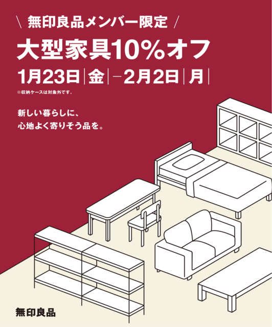 News無印良品メンバー限定「大型家具10%オフ」開催のお知らせ:【無印良品】神戸BAL 4.5.6F