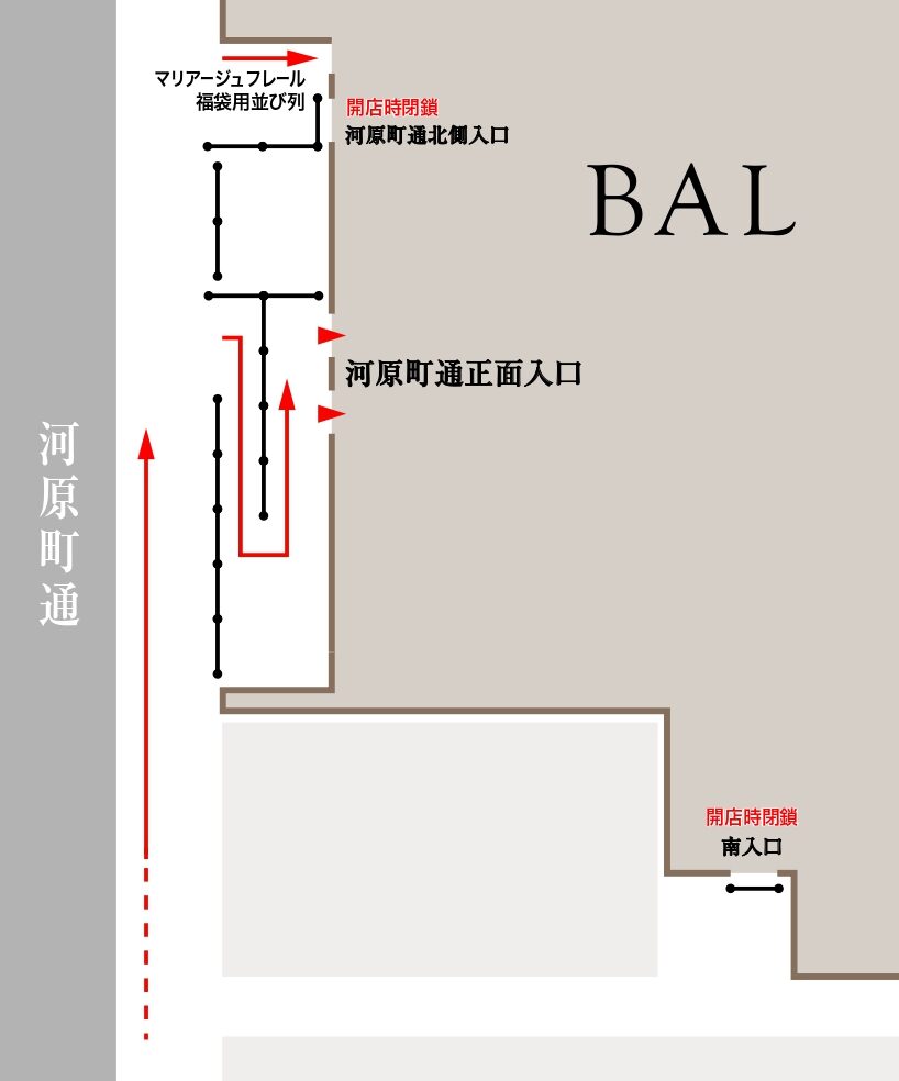 保安上の理由により、開店時のご入店は、河原町通り中央入口からのみとさせていただきます。